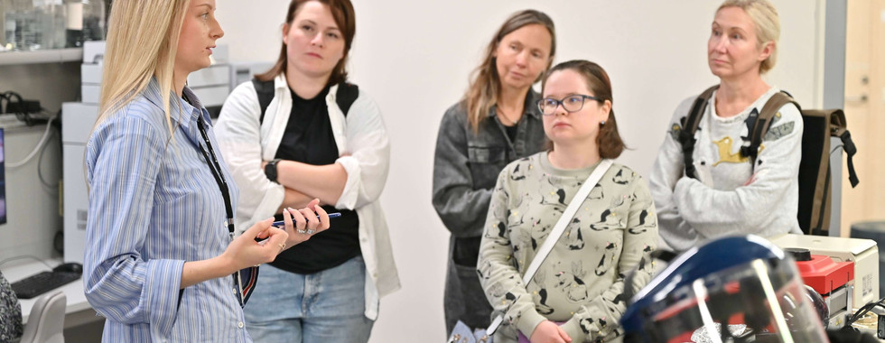 Molekulaarteaduste laborites tutvustas TLÜ loodus- ja terviseteaduste instituudi tooteinnovatsiooni peaspetsialist Maria Martšenko edukaid koostööprojekte kosmeetikatoodete ja loodusressursside väärindamise suunal. Samuti molekulaarteaduste labori poolt teostatavaid keemilisi analüüse.